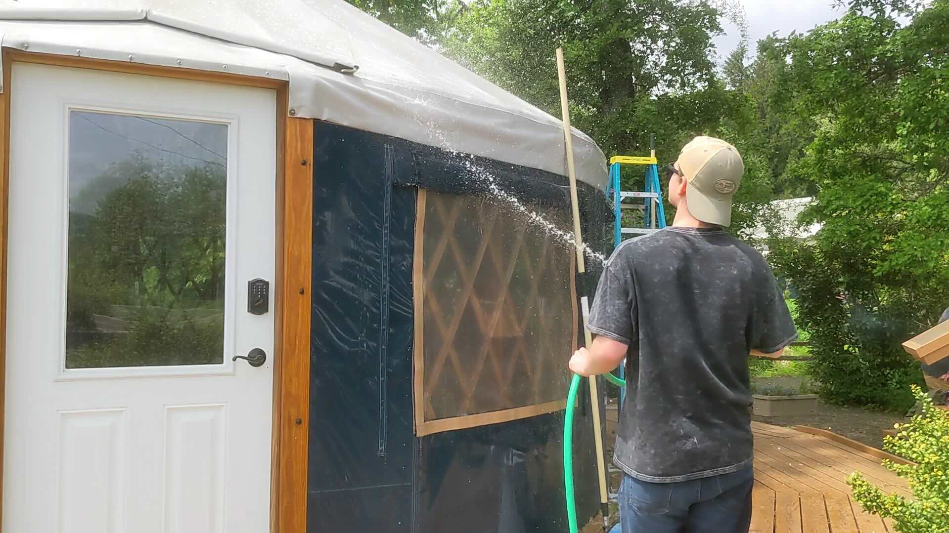 Si eres un operador de cabaña experimentado, es probable que tengas un protocolo de mantenimiento bien establecido que incluye cosas como limpiar canaletas, lavar a presión el revestimiento, retocar la pintura y, según tu región, aplicar zinc al techo para prevenir el musgo. En el caso de las yurtas, la mayoría de estos pasos, si no todos, son innecesarios. Y, de hecho, hay algunos, como el lavado a presión, que desaconsejamos enfáticamente.